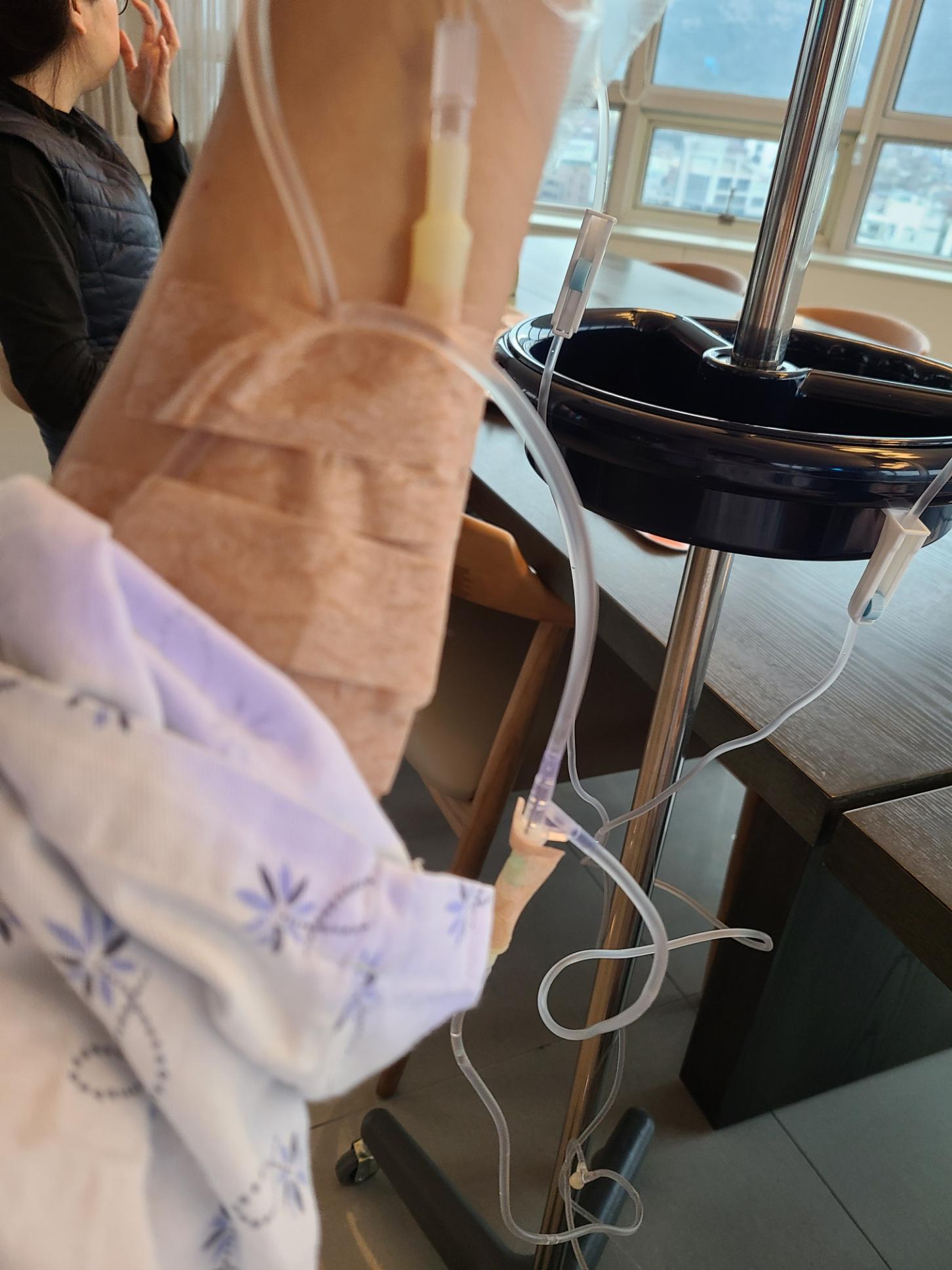 이렇게 링겔을 맞으면서 밥을 먹기도하고